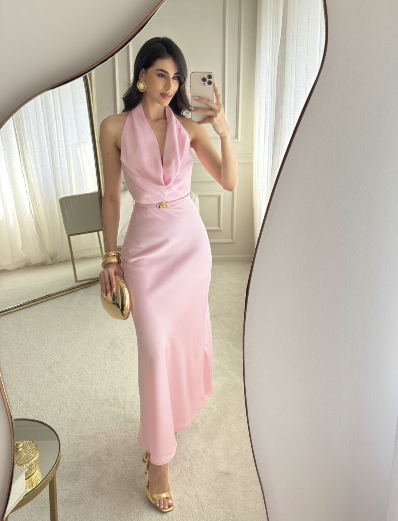 / Vestido Cetim Cinto